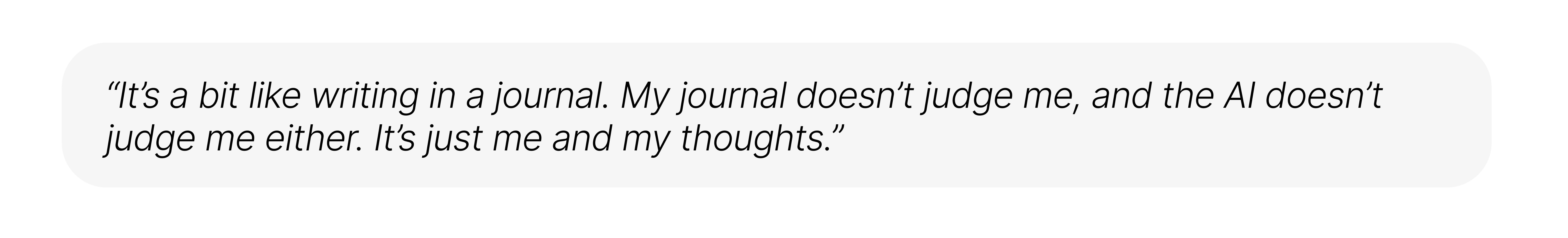 Several participants in our study suggested this themselves—they saw value in combining AI's judgment-free initial gathering with human insight for deeper analysis.